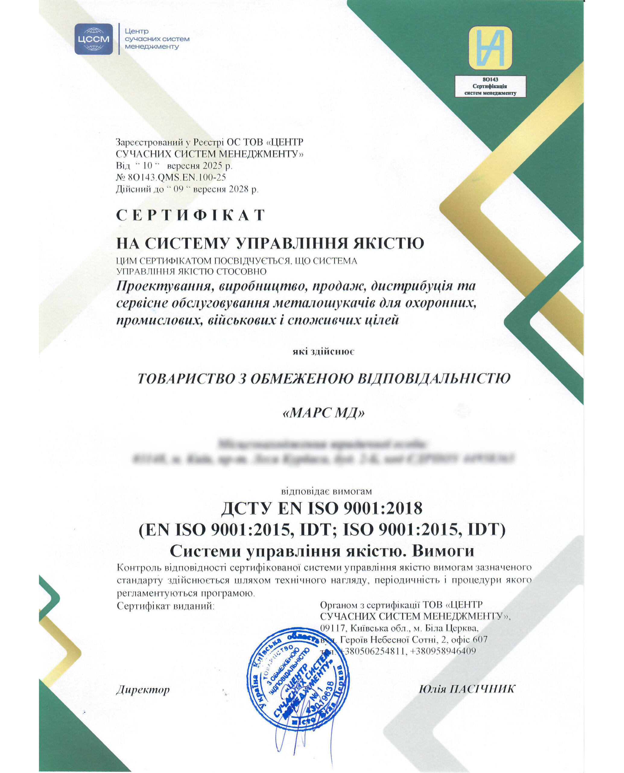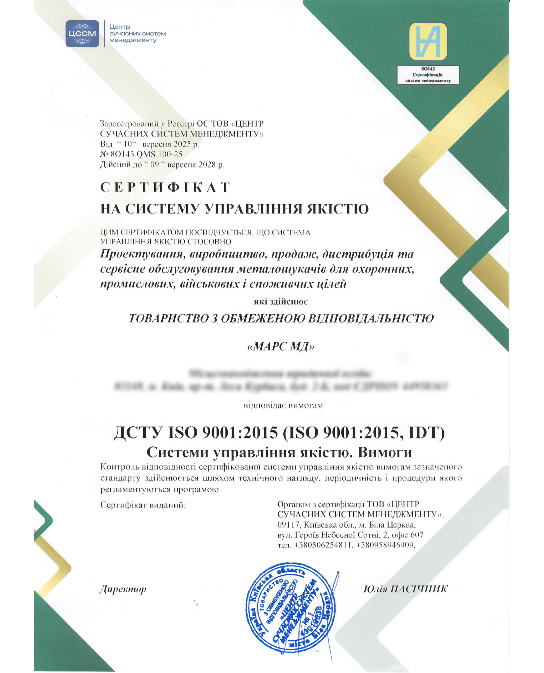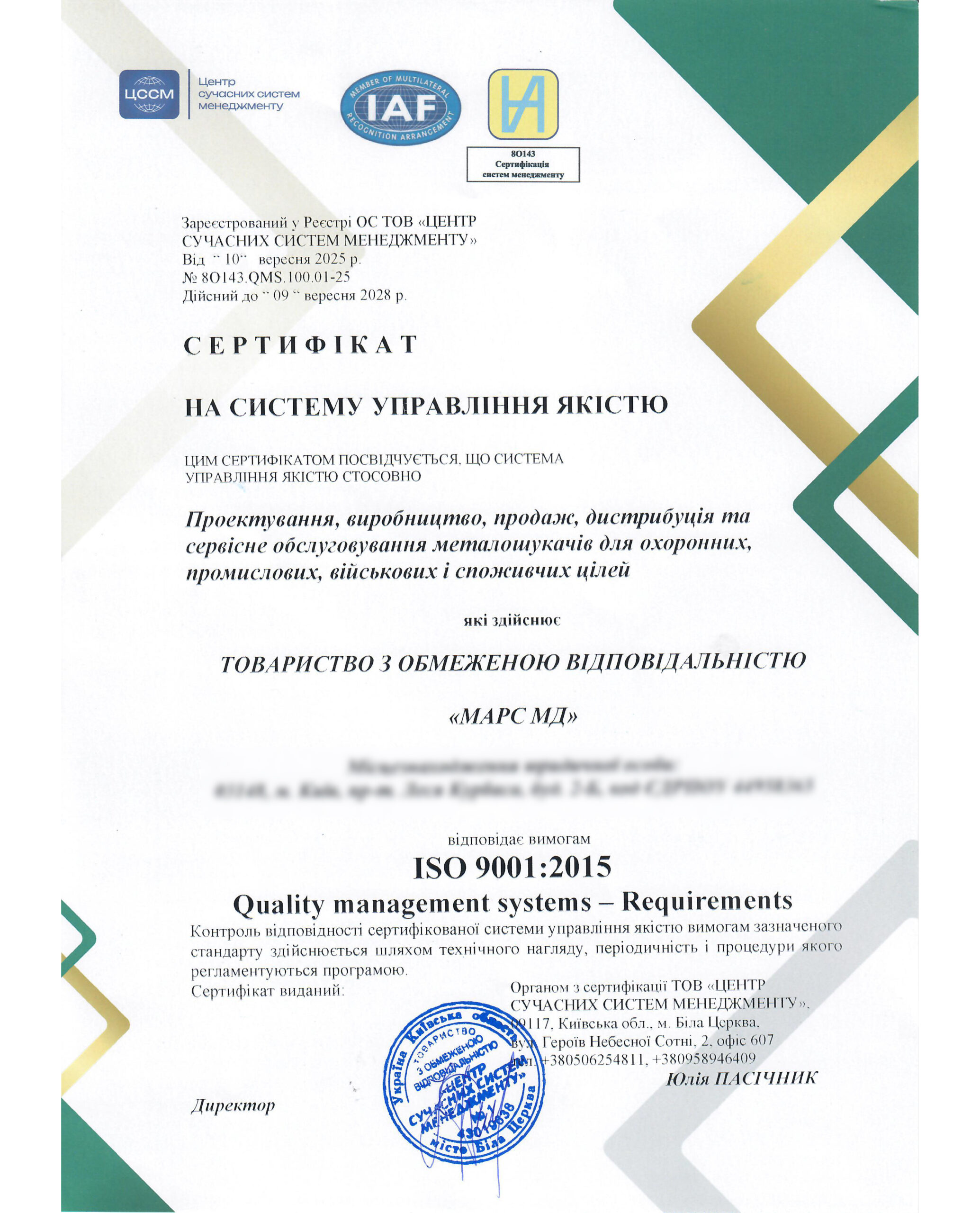 Ця сертифікація підтверджує, що для нас якість – це не просто слово, а основа всього, що ми робимо.